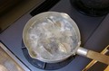 - 良く砂を吐かせて貝殻も良く洗ったはまぐりとお酒を入れて中火で貝殻があくまで煮る。