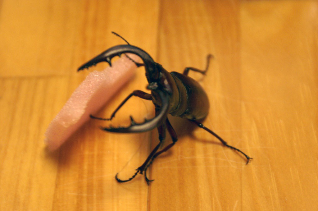 i|:!ヾ、_ノ/ u {:}//ヘ 見に行ったらノコギリクワガタが天井から降ってきた。』
