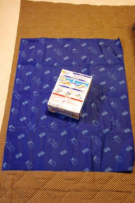 大きさは 70cm x 90cm と布団シングルサイズからすると、約 1/3 の大きさで、ジェルマットの部類でいくと、やや小さめのサイズ。