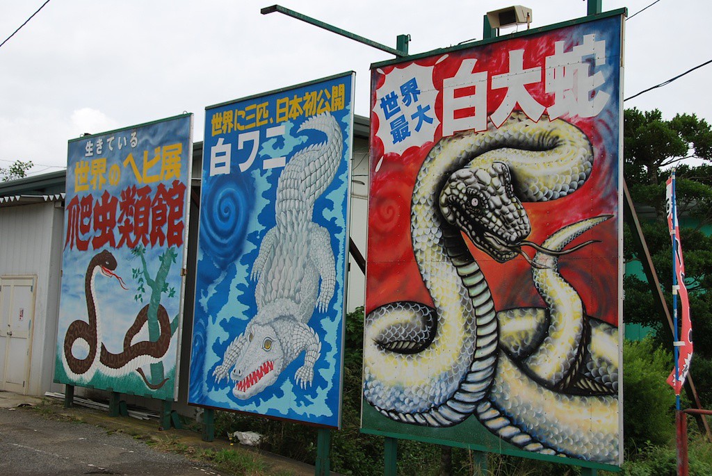 気を取り直して白い大蛇とワニを観に行きました。ちょっと看板がおばけ屋敷っぽいのが気になります。