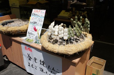 お昼の時間でお腹もぺこぺこになり、菊水霊水付近のお団子を売ってるお店へ立ち寄ってお昼。まずは有名な養老サイダーで喉を潤します。湧き水とグラニュー糖と炭酸で作ったシンプルなサイダーです。どこか懐かしい味です。炭火で焼いてるよもぎ団子も食しました。トッピングはあんこです。これが想像より美味しくてびっくり。お土産で三本買っていきました。