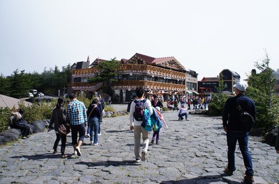 上の方に七合目が見えるのですが、富士山の山頂を拝むこともできたので登山はココまでとしました。霧が晴れたのも僅かに1分程度。本当にラッキーでした。∩(≧∇≦)∩