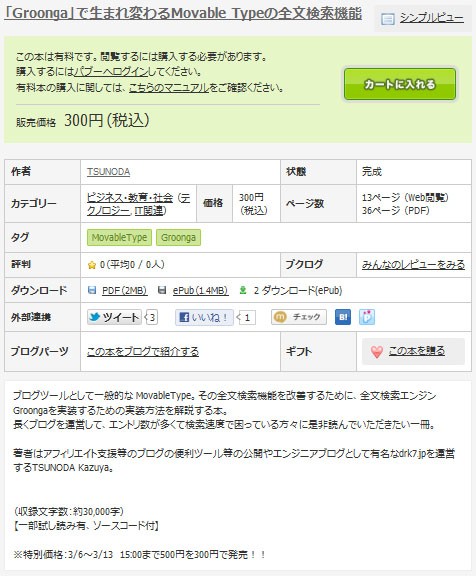 ブクログのパブー(Puboo)で Groonga 本を執筆しました