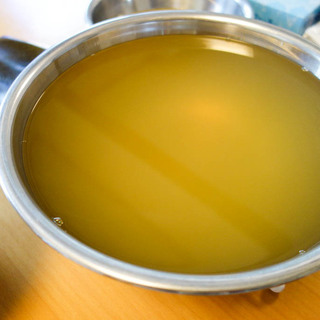 - まずはたっぷりのかつお節と昆布で和風だしをとる。
