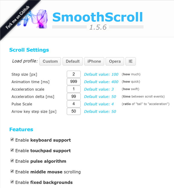 2. Chrome のスクロールが超速すぎるので SmoothScroll で低速化