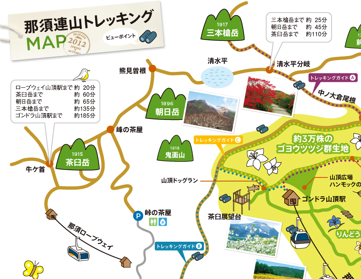 那須岳登山のブログをいろいろ見てたけど、茶臼岳、朝日岳、三本槍岳を縦走するのがガチ登山好きな方々のおすすめプランらしいんだけど、数年ぶりの本格的な登山と言うこともあり朝日岳〜三本槍岳の縦走は体力的にも時間的にも無理だなと感じたので、前回断念した茶臼岳と、お隣の朝日岳は登っておこうと心に決めた。
