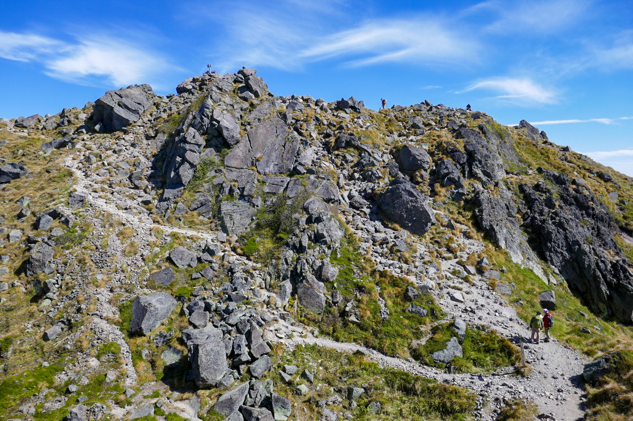 別ルートから登ってきた登山客が結構いる。山頂までもう後少し!ここらが一番ハイテンションになる瞬間ですね!